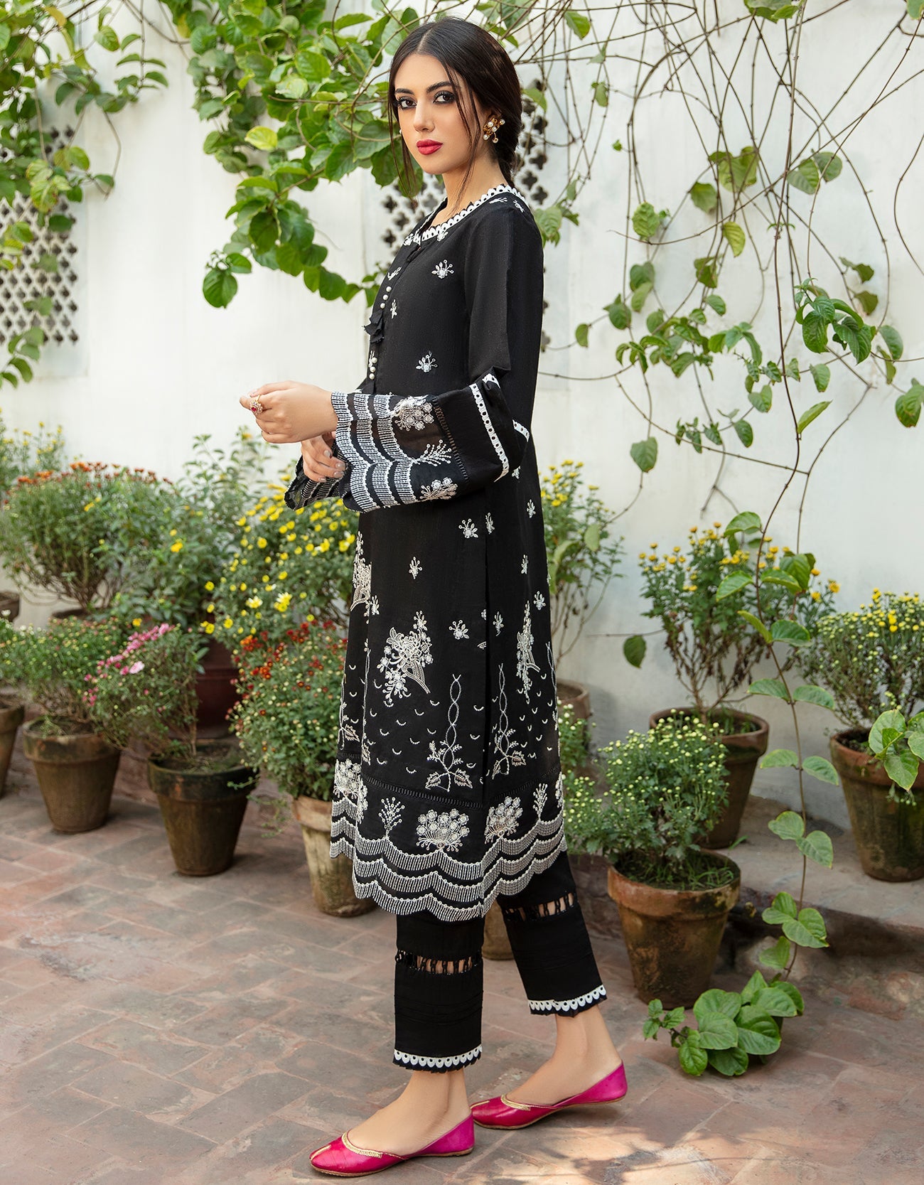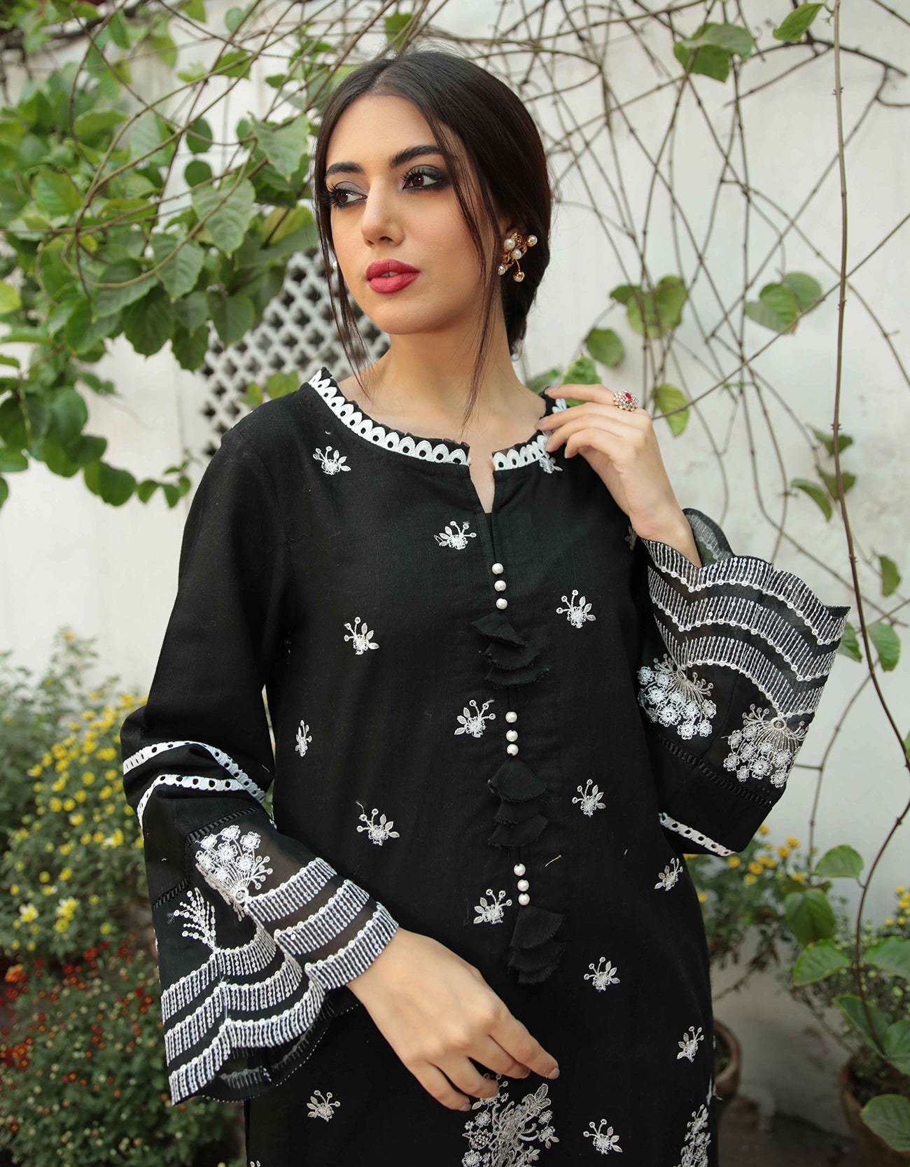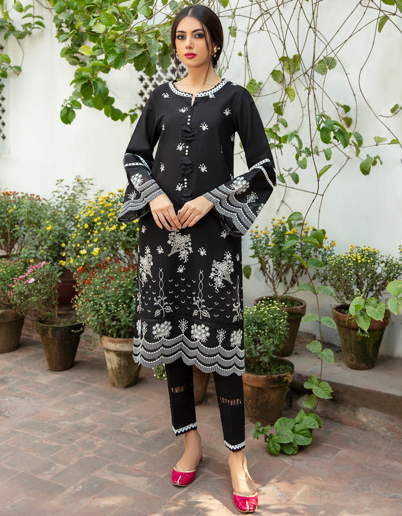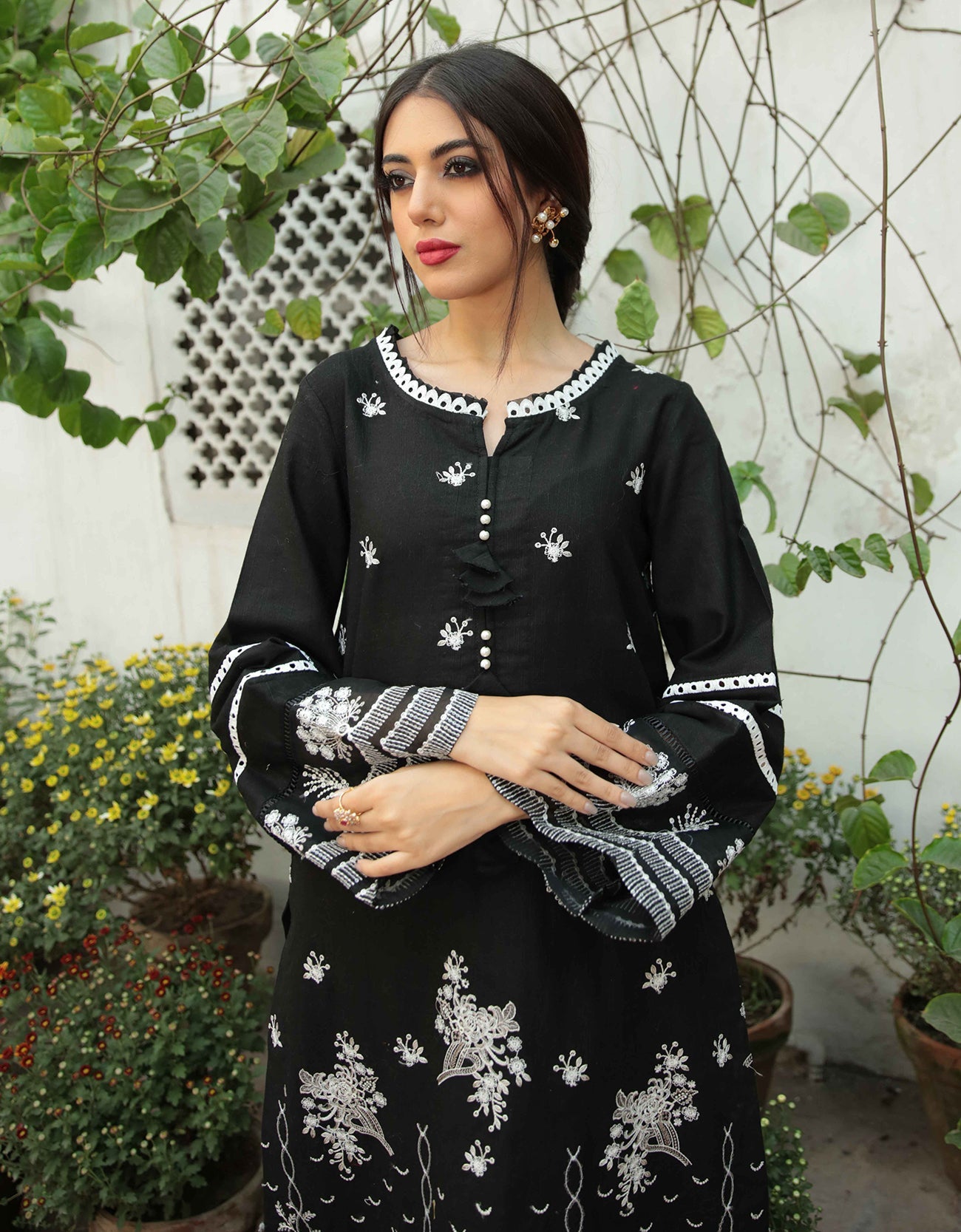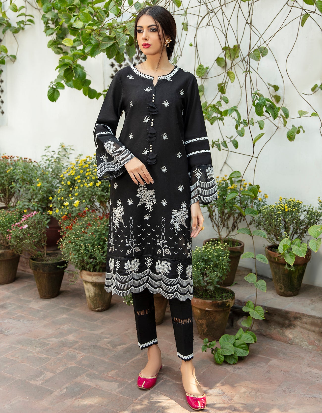 The black and white of this dress blend together in a harmonious sense to create a stunning winter look.