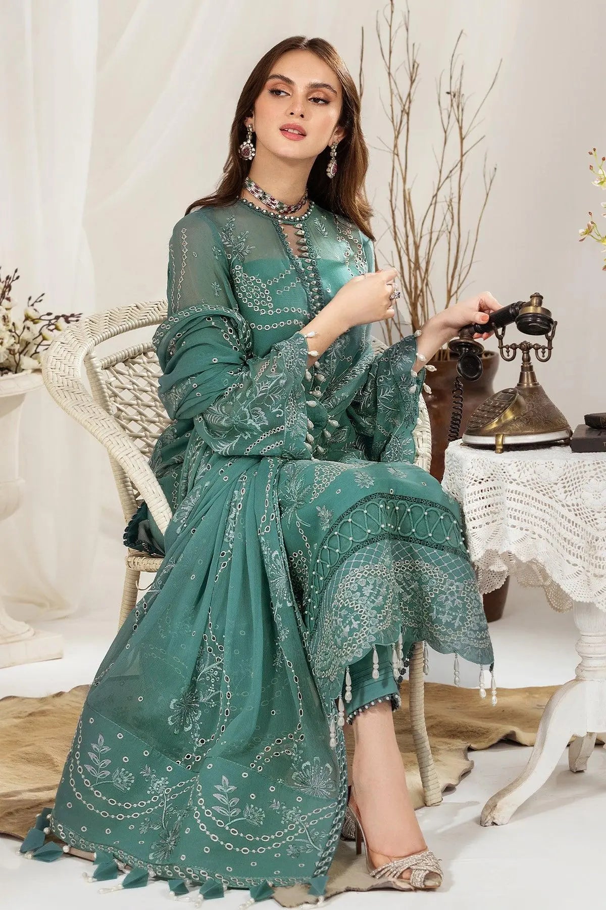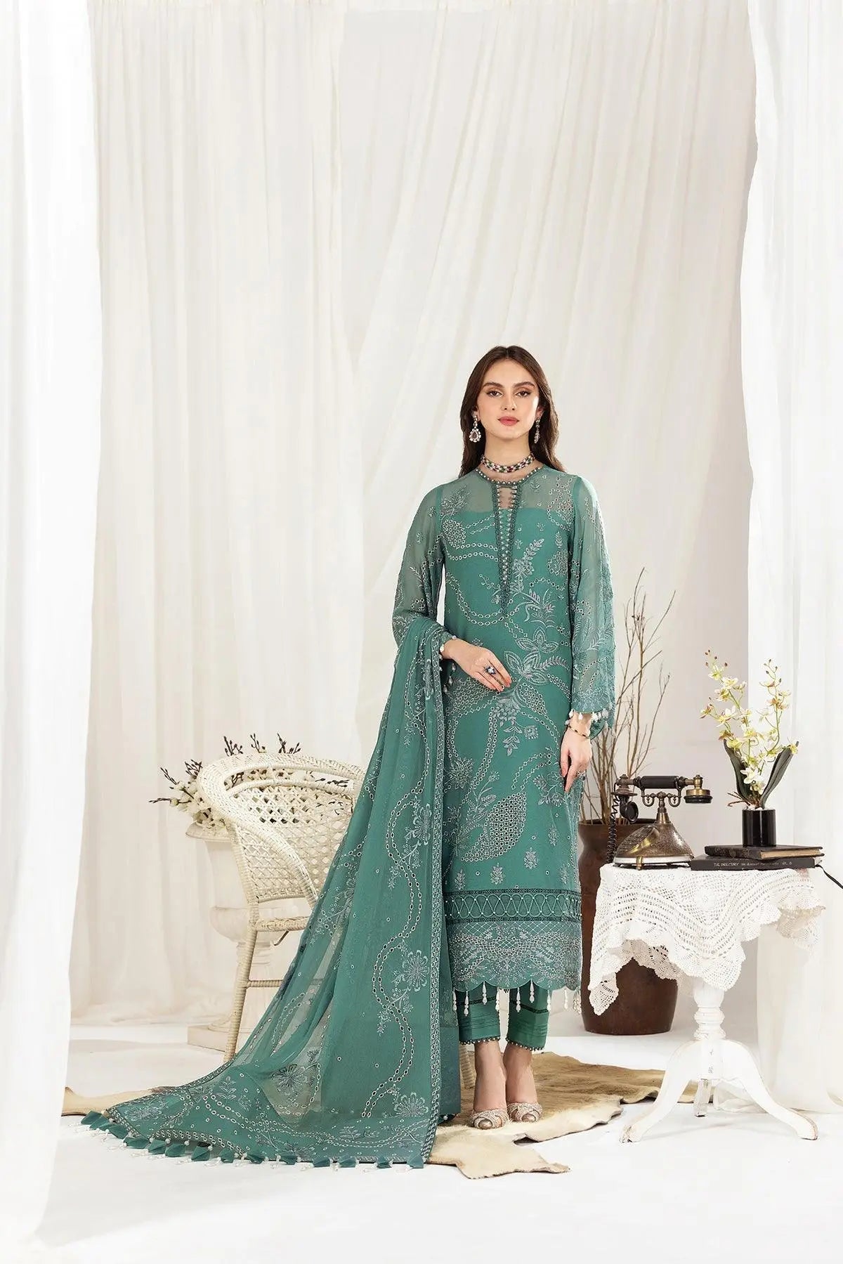 Embroidered Chiffon Front Kali